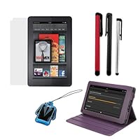 Buy Evecase Purple Book-Form Slim Leather Stand Case Cover + Clear LCD Screen Protector + 3 Pack Stylus Now