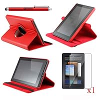 Red 360 Degree Rotating Leather Case Cover with Swivel Stand for Amazon Kindle Fire with Screen Prot