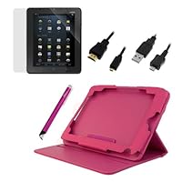Buy EveCase Hot Pink 360 Degree Rotating Folio Leather Cover Case with Built-in Stand + Clear LCD Screen Now