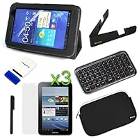 iKross Foldable Mini Stand + EveCase Black Folio PU Leather Stand Cover Case + Neoprene Zipper Pouch