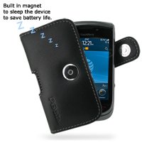 PDair Leather Case for Blackberry Torch 9800 - Horizontal Pouch Type (Black)