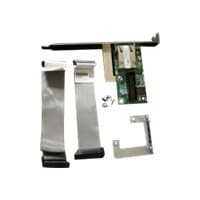 Fits in either a regular slot cover or in the pop out assembly in a 1U/2U rack server. Cables are includes along with all needed hardware. Installation is easy, highly recommend.