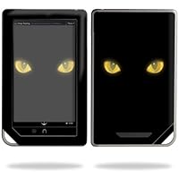 Easy to put on and really looks great! I have a black kitty whose eyes look like this a lot in the dark! Love that the black decal on the front seems to tone down the silver of the Nook! Would recommend any one of these skins.