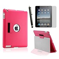 Slim-Fit Dual Layer Hot Pink Leather Case with Smart Cover Function Stylus Holder for iPad 2, iPad 3