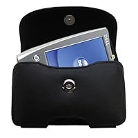 Belt Mounted Leather Case Custom Designed for the Dell Axim x5 - Black Color with Removable Clip by