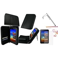 rooCASE 3n1 Executive Portfolio (Black) Leather Case Cover / Capacitive Stylus / 2Pack Anti-Glare Sc