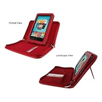 There was a second Nook at home and despite the shortcomings of its inability for this cover to stand vertically, the positives outweighed the negative and so I purchased a SECOND ONE. And I realized why one commenter mentioned the velcro thing for this cover. The second one had a small case within the cover that was attached with Velcro. This model was more stable than the one I have as it did have Velcro on top to keep the Nook from sliding out. I purchased this from pcmicro store on a well known auction site as it was being charged for less than here and this same seller is selling here too.i looked at cases for my Nook between 19 and 80 dollars. I wanted good protection and most of all, I wanted it to zipper completely closed. This is the case I found that zippered close completely, and the Nook could not fall out. I read some reviews of the nook falling out of covers. I though that was unacceptable. I got the red case. I think it is classy. I asked my wife if it looked feminine, she said not at all. The Nook fits tight in this case in the the straps it goes into and I can not make it fall out even if I turned it upside down. Now I am not saying to bang it up against a wall either when you have it upside down. You can get to all controls. The only one is alittle funky to get to is the USB charge connection...You have to move the zipper away from the opening to push the USB connector into the Nook. Not a big deal for me. The only drawback is the tilt stand. Its nice for PDF documents. But you can not use it for reading books. The Nook will not orient that way for books, unless I am missing something. But I tried it and the Nook will orient for pictures but not for my books. It will for the net. So you can read the net or PDF while having a cup of coffee. I don't use the net to much. I don't think that is a strong point of the Nook. When you read books, you have to hold the left cover open. So its just like holding a book. I have a place for a nice stylus that has the soft bottom boot for using on the screen. It fits in the binding space inside. There is a small loop for it. I don't use the cover for credit cards. You have to watch what you put in there because that inside rests up against the Nook screen. So thats why I give it a four star. If it had a way to use it on the stand with my books, it would be perfect. and there is a magnet that holds the tilt stand up against the back cover, very nice touch. Those expensive good looking covers that are rich looking, I wonder if they have as much protection as this cover that I am reviewing, probably not. I value my possessions, so that is why I look for protection. I do not want a mistake to take my Nook out. I even would say you probably could drop the Nook from 3 feet and this cover would protect it from being smashed, but thats just my opinion. I am especially pleased with the purchase of this cover.I love the color, and it's quite sturdy. It fits my NC perfectly. I also like that you can remove the portion that houses the actual Nook Color and place it back into the case itself with velcro. That part is pretty handy. However, it isn't for those who want to fit your NC into a standard sized purse -granted, you can fit it into a huge purse. This is more of a standalone case.I have been looking for a protective case for my nook color, after some research I found this one, I bought it, and here are my comments: