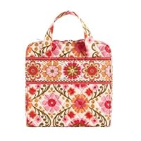 I bought this for my bestie's birthday because she loves this pattern. I read another review that said that the Kindle fit perfectly in the larger pocket. Since my friend was getting a Kindle for her birthday I thought this would be the perfect gift. It can also hold all of her charging cords and other stuff. It is "soft" enough to be practical but sturdy enough to protect her belongings.