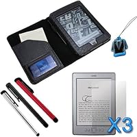 CONS: 1)The leather is not top quality, not sure just how long it will stand up to regular use. 2)The screen protectors aren't really that easy to attach. The first one I applied had residue from the little tab you pull off after attaching it. Even using the little card while applying the protector, it was very difficult to get all the bubbles out.