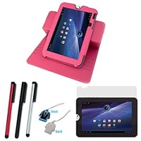 Read Best Reviews of GTMax Hot Pink Premium Leather Multi-Angle Rotating Folio Cover Case with Built-in Stand + LCD Scree Here