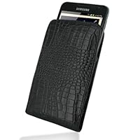 The case is somewhat better than I expected, given its made in China origins. The case come very well packaged, wrapped in a cloth in what looks almost like a gift box. The embossed leather appears to be of decent quality. I can't tell if it's a pretty good fake leather, or a second-rate genuine leather. The stitching around the case is even, with no loose threads. On this embossed version of the case, there isn't a giant PDAir logo so that the case looks actually quite classy and anonymous. The leather and elastic sides are stiff, making it hard to remove the phone, but I imagine it will loosen up with time. It accommodates my phone even with its hard plastic protective case around it. There's no magnetic closure to interfere or damage the touch screen with prolonged exposure. The holster clip is wide and sturdy.