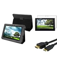 Black Leather Case + Clear ANTI-GLARE Screen protector + MINI HDMI Cable 6 feet for ASUS Eee Pad Tra