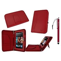 Buy rooCASE Executive Portfolio (Red) Leather Case Cover and (Red) Capacitive Stylus for Amazon Kindle F Now